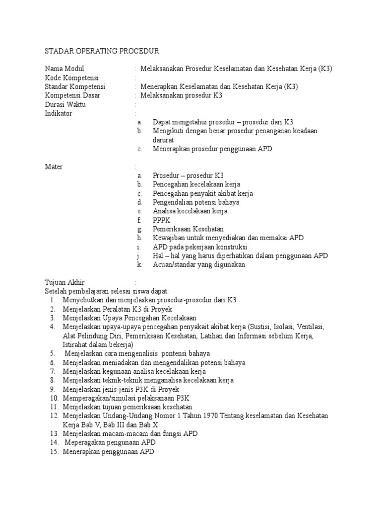 Contoh Sop K3 Di Tempat Kerja Ahmad Marogi